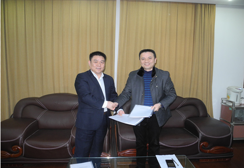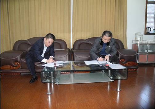 (湖南紅海人力資源有限公司毛雙喜總經(jīng)理與湖南省郵政公司長沙郵區(qū)中心局鄭學軍局長簽署勞務承攬合作協(xié)議)