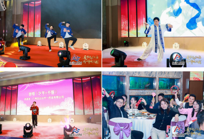 隨后,現(xiàn)場(chǎng)迎來了激情澎湃的鼓樂表演——廣州白云山中一藥業(yè)有限公司《鼓舞飛揚(yáng)》,他們用氣勢(shì)磅礴的鼓聲點(diǎn)燃了寒冬中的熱情,完美展現(xiàn)紅海人的青春活力與陽光自信。南沙區(qū)少年宮用二胡演繹了經(jīng)典名曲《賽馬》,樂曲旋律粗獷奔放,描繪出牧民歡慶賽馬盛況場(chǎng)景,讓人沉醉其中。增城區(qū)青少年宮帶來街舞表演《Don't worry》,他們跟隨著強(qiáng)勁的音樂節(jié)奏,用動(dòng)感十足的舞步,讓現(xiàn)場(chǎng)氣氛達(dá)到高潮。來自富麗龍?zhí)珮O的表演《紅海太極》,別具一格、獨(dú)出心裁,配合著干冰煙霧,仿佛進(jìn)入仙境,行云流水的招式展示,靜而生動(dòng),剛?cè)岵?jì),讓大家內(nèi)心也瞬間平靜下來。廣州白云山中一藥業(yè)有限公司員工為大家演唱了《少年+不服》,耳熟能詳?shù)男勺屓瞬挥勺灾鞯馗饋?。精彩的?jié)目充分展現(xiàn)了紅海人的風(fēng)采與魅力、奮發(fā)與上進(jìn),并向領(lǐng)導(dǎo)嘉賓呈現(xiàn)出紅海人活力四射的精神風(fēng)貌。