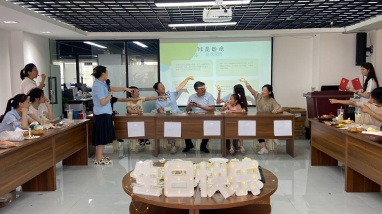 在接下來的第三季度員工生日會上,壽星們經(jīng)過緊張刺激的小游戲環(huán)節(jié)“我的禮物我做主”都分別抽選到了由工會精心準(zhǔn)備的禮物。隨后伴隨著《生日快樂》熟悉又溫情的旋律和躍動的燭光,壽星們共同切開象征著生活圓滿、甜蜜幸福的生日大蛋糕,大家也紛紛送上祝福,一起品嘗這份有甜度的幸福感。游戲環(huán)節(jié)《誰是臥底》更是將整個生日會的氣氛推到了歡樂的頂峰。