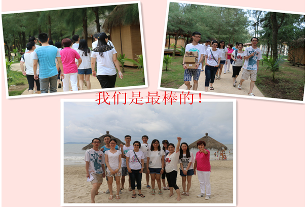 25日早上9點(diǎn),我們集中在中石化大廈正門,身著鮮艷的衣服,乘坐旅游巴士歡快地前往美麗的茂名電白的浪漫海灘。一路上,大家歡聲笑語(yǔ),工會(huì)小組長(zhǎng)黃永俊代表天河分公司預(yù)祝拓展活動(dòng)圓滿成功高歌一曲,天河分公司領(lǐng)導(dǎo)黃總做了拓展活動(dòng)正式啟動(dòng)的發(fā)言,客服主管黃殿光代表客服獻(xiàn)上笑話,整個(gè)車內(nèi)充斥著歡快和諧的氛圍。經(jīng)過(guò)了約4小時(shí)的車程,到達(dá)茂名浪漫海灘度假區(qū),撲面而來(lái)的是大海、沙灘、漁船、椰林、綠茵草地,藍(lán)天白云,一間間具有巴厘島、馬爾代夫特色的茅草屋矗立在沙灘上,令人仿佛置身于巴厘島風(fēng)情、馬爾代夫的風(fēng)景。小伙伴們都?xì)g呼起來(lái)了。