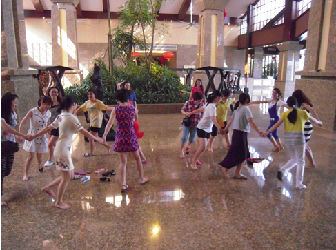 溫泉景區(qū)的秀麗景色讓同志們忘卻了一路的疲倦,一到目的地,大家便在客服經(jīng)理王嘉惠的組織下興奮地拉開了本次拓展活動的序幕。