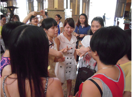 首先,我們抽簽分組來了個熱身賽——“心有靈犀紅海通”?;顒邮遣捎萌P兩勝制,隊員們用身體語言傳達一組數(shù)字。在王經(jīng)理簡單介紹活動規(guī)則后,小組隊員馬上展開了討論,從符號到大小寫,再到比劃的方式,隊員們都考慮得非常仔細,團隊的榮譽感、默契和激情都得到了充分的展示。大戰(zhàn)數(shù)回合下來,輸贏與否已不重要,“心有靈犀紅海通”成為了同志們的第一個大收獲。