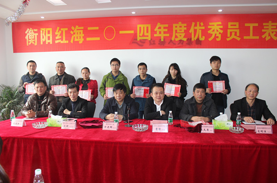 2015年1月9日上午,衡陽紅海2014年度“優(yōu)秀外派員工表彰大會”在衡陽紅海新辦公樓會議室隆重舉辦,本次大會邀請到了衡陽市總工會萬進輝副主席,總工會組織部凌建新部長,衡陽市人力資源與社會保障局勞動關(guān)系科王大展科長,以及湖南紅海人力資源有限公司文健副總經(jīng)理共同參與。