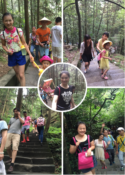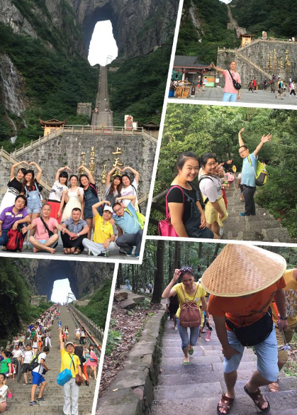 既是戶外鍛煉,就要達(dá)到鍛煉的目的。第二站的天門山999級(jí)臨90度垂直臺(tái)階,給了每一個(gè)人檢驗(yàn)身體狀況的機(jī)會(huì)。剛開始的興致高昂及信心滿滿到后來的每下一步臺(tái)階都感覺到小腿的生疼,再到后面的干脆需要做到臺(tái)階上休息才能繼續(xù)的堅(jiān)持,讓我們每一個(gè)人都體驗(yàn)到了平時(shí)身體鍛煉的重要性,也讓我們更深刻了解到:只有好的身體狀況才能更好的投入到工作生活中。那一步一步的堅(jiān)持,也正是我們這次要體現(xiàn)和鍛煉的,那是毅力,那是奮斗,那是不服輸。我們能不斷征服自己,征服大自然,在工作中,還有什么是我們不能完成的呢?