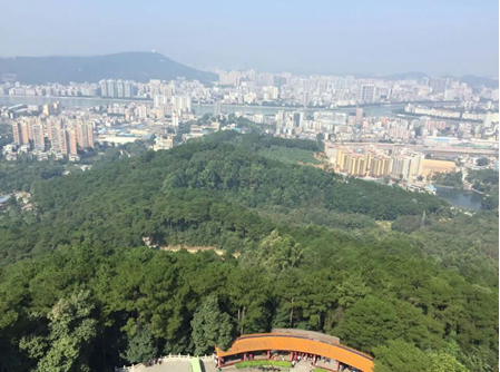 早八點(diǎn),一行中、青、小三代人在森林公園門口集合。成天坐在辦公室里,殊不知初秋的韶關(guān)也已透著微涼??粗鴺淞珠g散落著的星點(diǎn)晨光,周邊或有嬉笑打鬧的孩子們,在你追我趕;或有你儂我儂的情侶,牽著手訴著情話;或有互相攙扶的老翁老嫗,不說話卻相視而笑莫逆于心的默契……在領(lǐng)導(dǎo)簡短卻富有激情的號召下,我們?nèi)齼蓛?、有說有笑地開始向韶陽樓頂前進(jìn)。