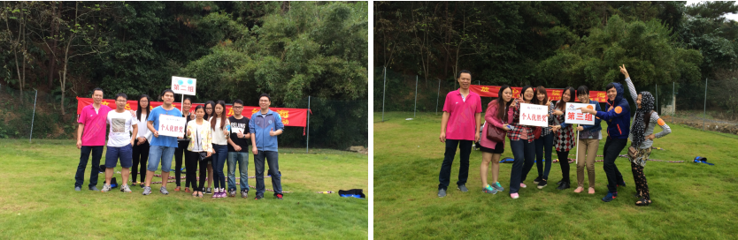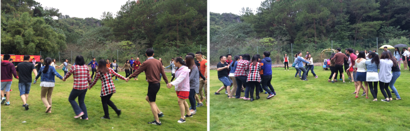 10月底的溫泉景區(qū)秋意盎然,山清水秀,清爽宜人。在一片綠草地上,員工們開展了一系列別開生面、參與度高、豐富有趣的團(tuán)隊(duì)活動(dòng)。由不同部門的同事們組成一支支新的團(tuán)隊(duì),并推選出各隊(duì)隊(duì)長(zhǎng)。在“友誼第一比賽第二”思想主導(dǎo)下,隊(duì)員們積極參與到別開生面的“桃花朵朵開”、“男女趣味拔河”、“撕名牌比賽”等游戲活動(dòng)中,讓不同部門的新老同事之間增進(jìn)了認(rèn)知和配合,既增強(qiáng)了彼此的親切感,也讓大家在緊張的工作中得到放松,營(yíng)造了團(tuán)結(jié)、友愛、向上的精神風(fēng)貌。團(tuán)隊(duì)活動(dòng)中在一片歡聲笑語中結(jié)束。