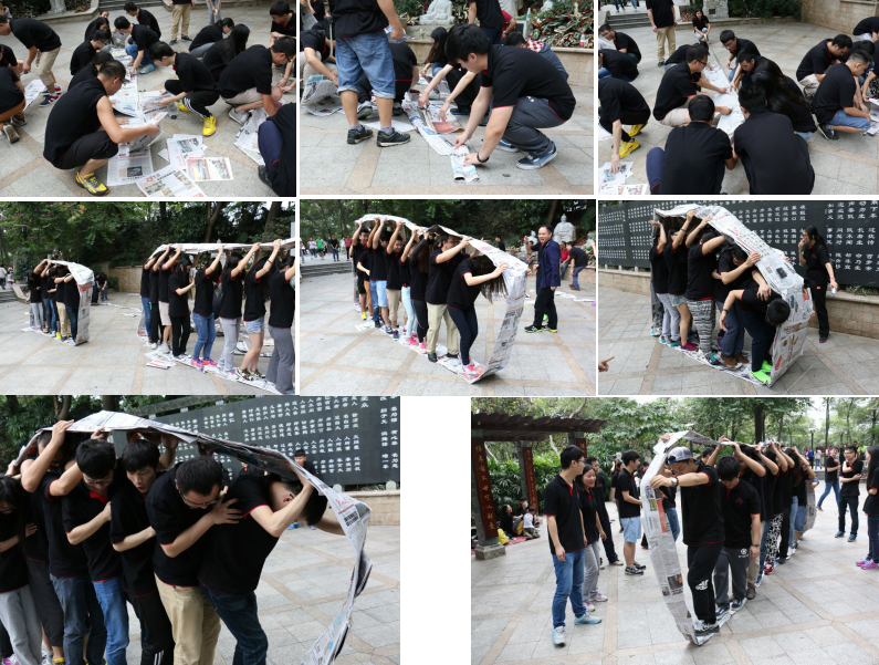 謀劃布局、快速?zèng)Q斷、迅速執(zhí)行是“團(tuán)隊(duì)向前沖”游戲的最大特點(diǎn)。團(tuán)隊(duì)以何種方式配合完成道具的制作,如何排陣前行,如何保證速度的前提下整支隊(duì)伍都能完整地留在道具圈中是各隊(duì)在進(jìn)行比賽時(shí)需思量、決斷、實(shí)現(xiàn)的。相信整場(chǎng)比賽下來(lái)各隊(duì)隊(duì)員對(duì)此均有所悟,更重要的是,團(tuán)隊(duì)能相互配合歡樂(lè)地完成整場(chǎng)比賽。